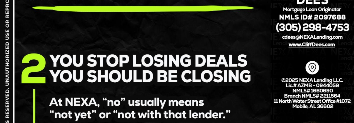 Hi, my name is Cliff Dees. I’m a Loan Officer with NEXA Mortgage, offering personalized mortgage solutions, fast customized quotes, great rates and service with integrity.