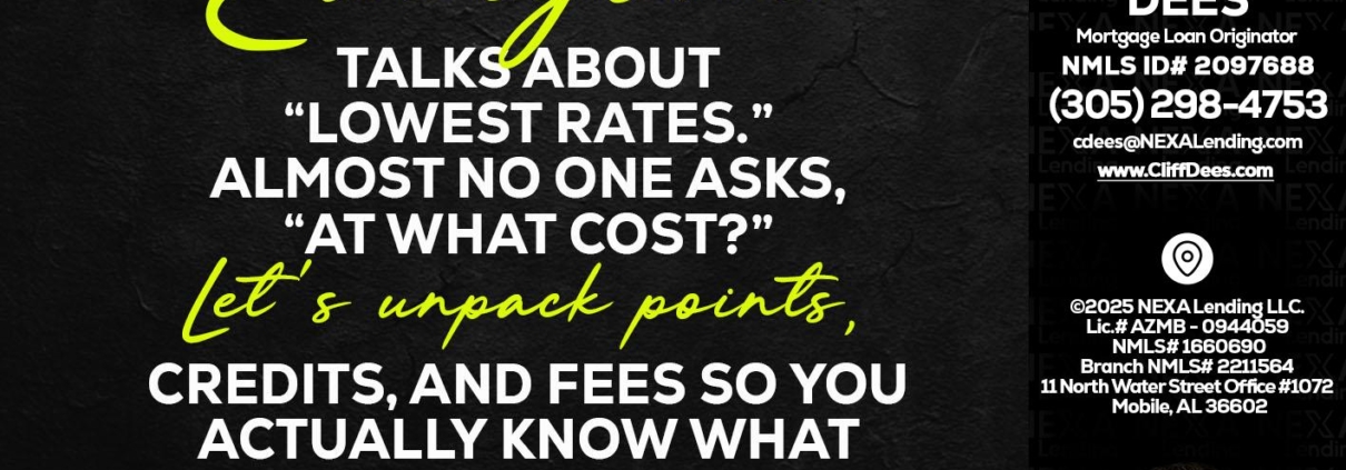 Hi, my name is Cliff Dees. I’m a Loan Officer with NEXA Mortgage LLC, (1660690), offering personalized mortgage solutions, fast customized quotes, great rates and service with integrity.