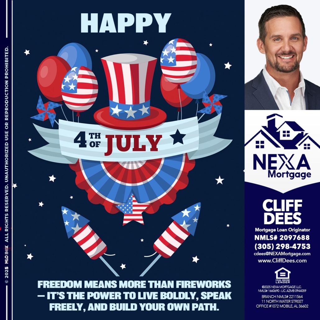 Hi, my name is Cliff Dees. I’m a Loan Officer with NEXA Mortgage LLC., offering personalized mortgage solutions, fast customized quotes, great rates and service with integrity.