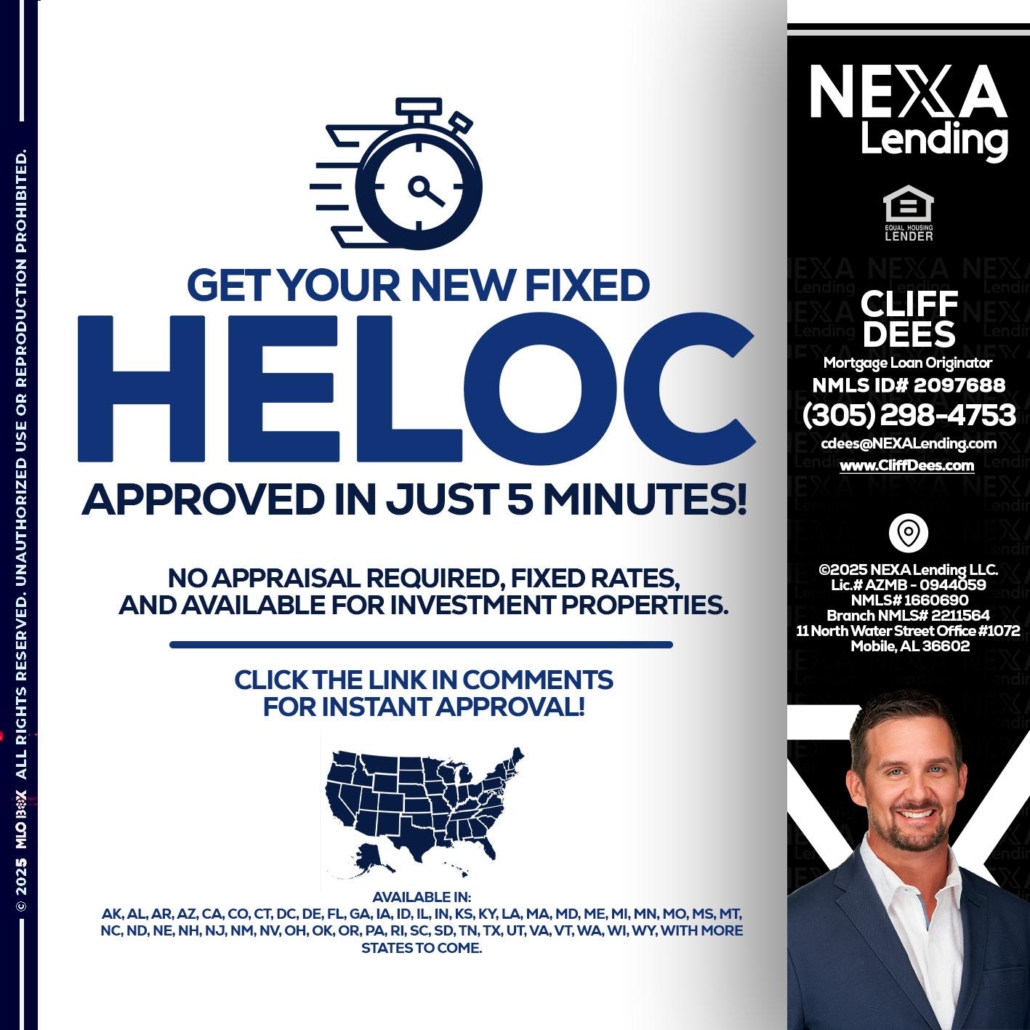 Hi, my name is Cliff Dees. I’m a Loan Officer with NEXA Mortgage LLC, (1660690), offering personalized mortgage solutions, fast customized quotes, great rates and service with integrity.