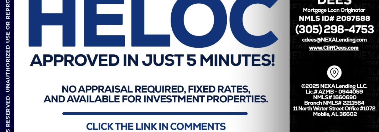 Licensed In: AL,FL,MS, NMLS # 2097688 | NMLS ID 1660690 | AZMB #0944059