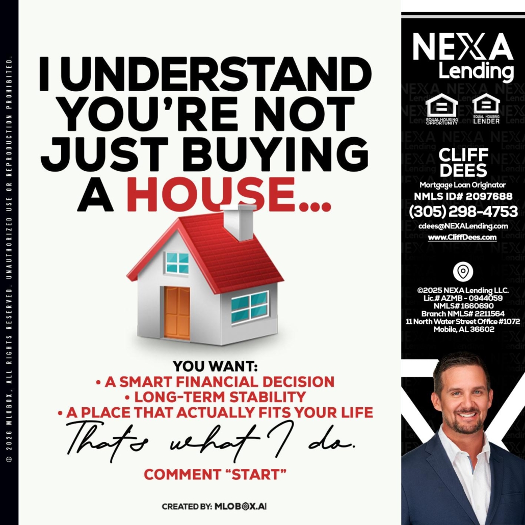 Hi, my name is Cliff Dees. I’m a Loan Officer with NEXA Lending LLC., offering personalized mortgage solutions, fast customized quotes, great rates and service with integrity.