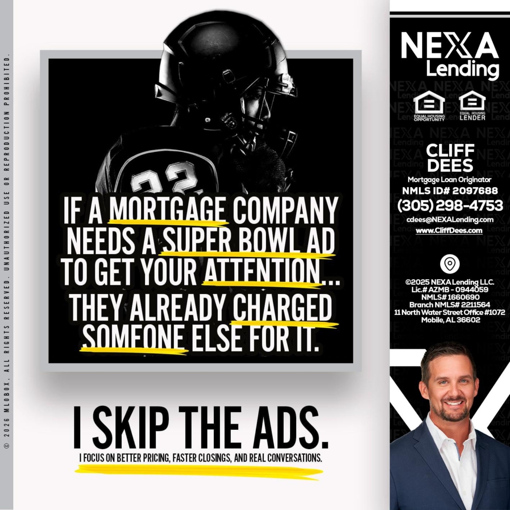 Hi, my name is Cliff Dees. I’m a Loan Officer with NEXA Mortgage, offering personalized mortgage solutions, fast customized quotes, great rates and service with integrity.