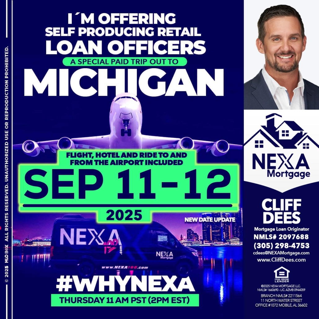 Hi, my name is Cliff Dees. I’m a Loan Officer with NEXA Mortgage LLC., offering personalized mortgage solutions, fast customized quotes, great rates and service with integrity.