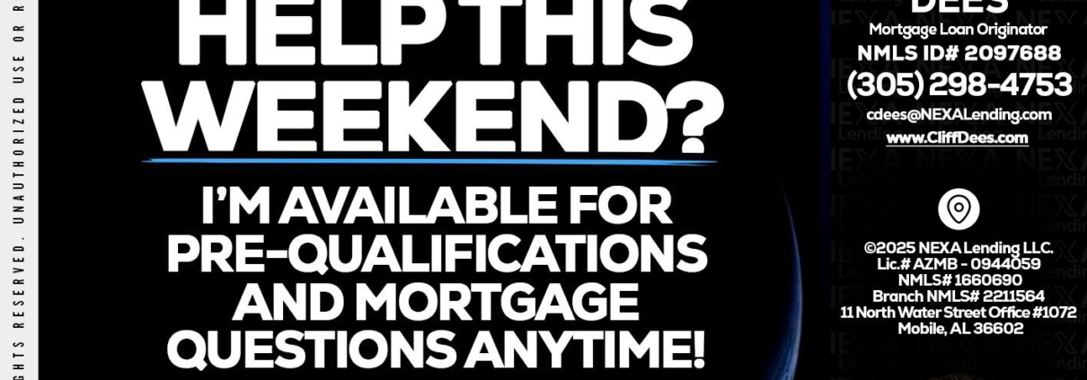 Hi, my name is Cliff Dees. I’m a Loan Officer with NEXA Lending LLC., offering personalized mortgage solutions, fast customized quotes, great rates and service with integrity.