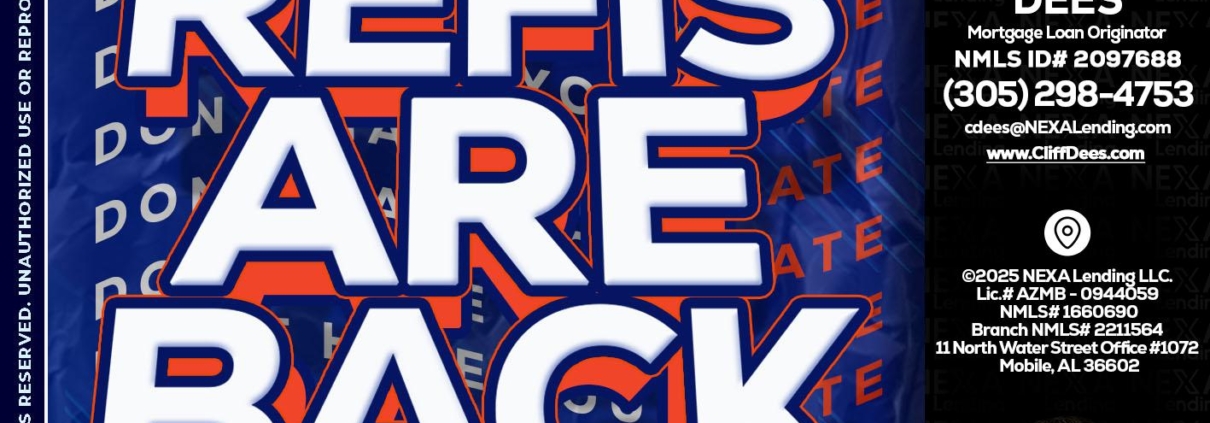 Hi, my name is Cliff Dees. I’m a Loan Officer with NEXA Mortgage LLC, (1660690), offering personalized mortgage solutions, fast customized quotes, great rates and service with integrity.