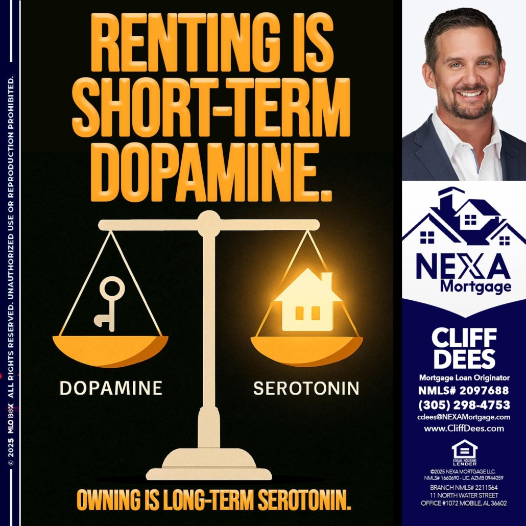 RENTING IS SHORT TERM - Cliff Dees -Mortgage Loan OriginatorHi, my name is Cliff Dees. I’m a Loan Officer with NEXA Mortgage LLC., offering personalized mortgage solutions, fast customized quotes, great rates and service with integrity.