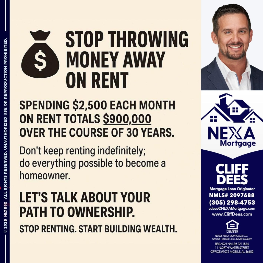 Hi, my name is Cliff Dees. I’m a Loan Officer with NEXA Mortgage LLC., offering personalized mortgage solutions, fast customized quotes, great rates and service with integrity.