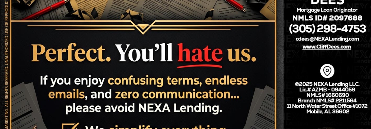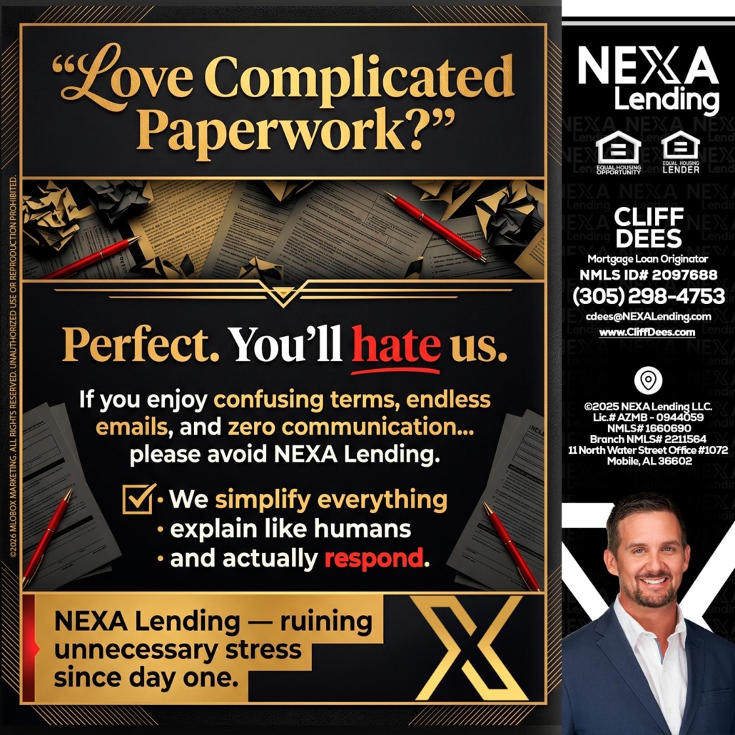 Hi, my name is Cliff Dees. I’m a Loan Officer with NEXA Lending LLC., offering personalized mortgage solutions, fast customized quotes, great rates and service with integrity.