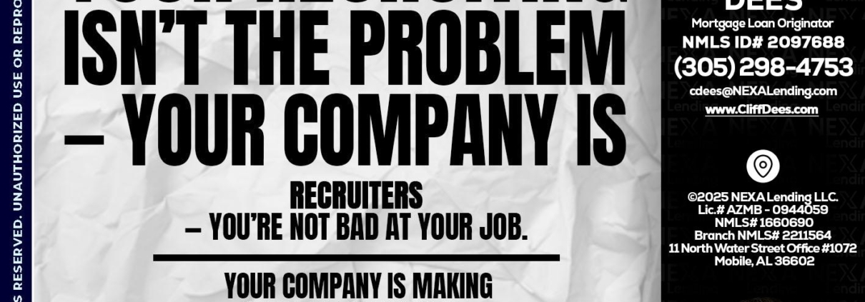 Hi, my name is Cliff Dees. I’m a Loan Officer with NEXA Mortgage LLC, (1660690), offering personalized mortgage solutions, fast customized quotes, great rates and service with integrity.